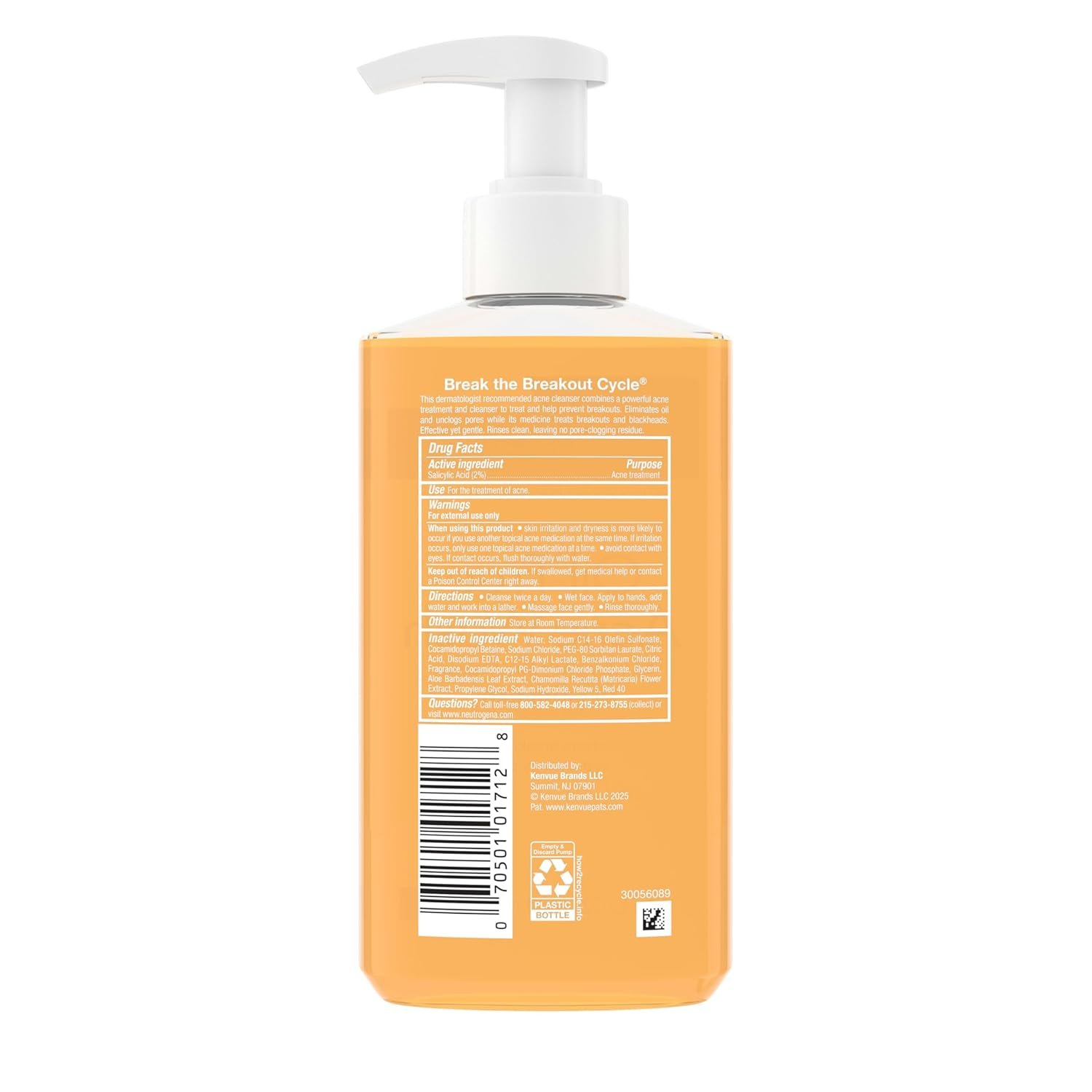 Neutrogena Oil-Free Acne Face Wash, Breakout Prone Skin Facial Cleanser with 2% Salicylic Acid Acne Treatment for Face